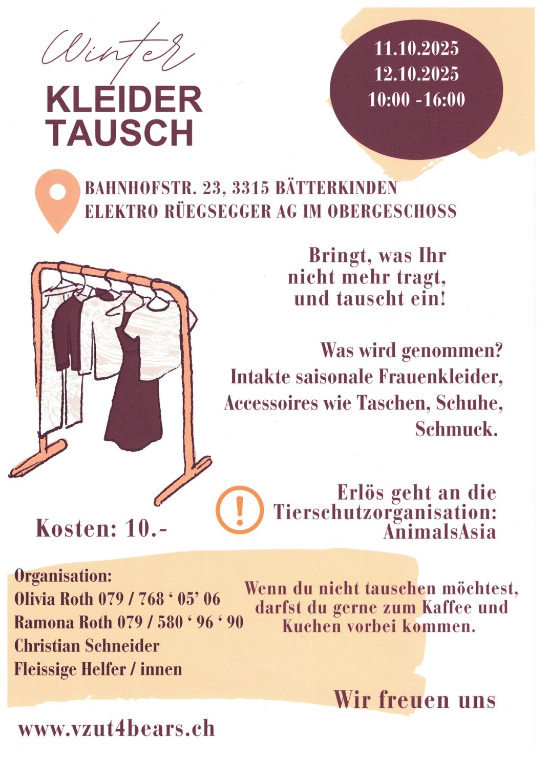Wir freuen uns riesig über den erfolgreichen Kleidertauschtag von Ramona Roth. Die Bären durften sich über unglaubliche CHF 750.00 Spendengeld freuen!!! Ein riesen grosses MERCI von Herzen an Ramona und alle fleissigen Helfer*innen.