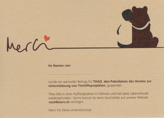Herzlichen Dank an Eveline Meier-Guillod und Michi Meier für das kreieren und sponsoren dieser bärenstarken Spendenurkunden!!!