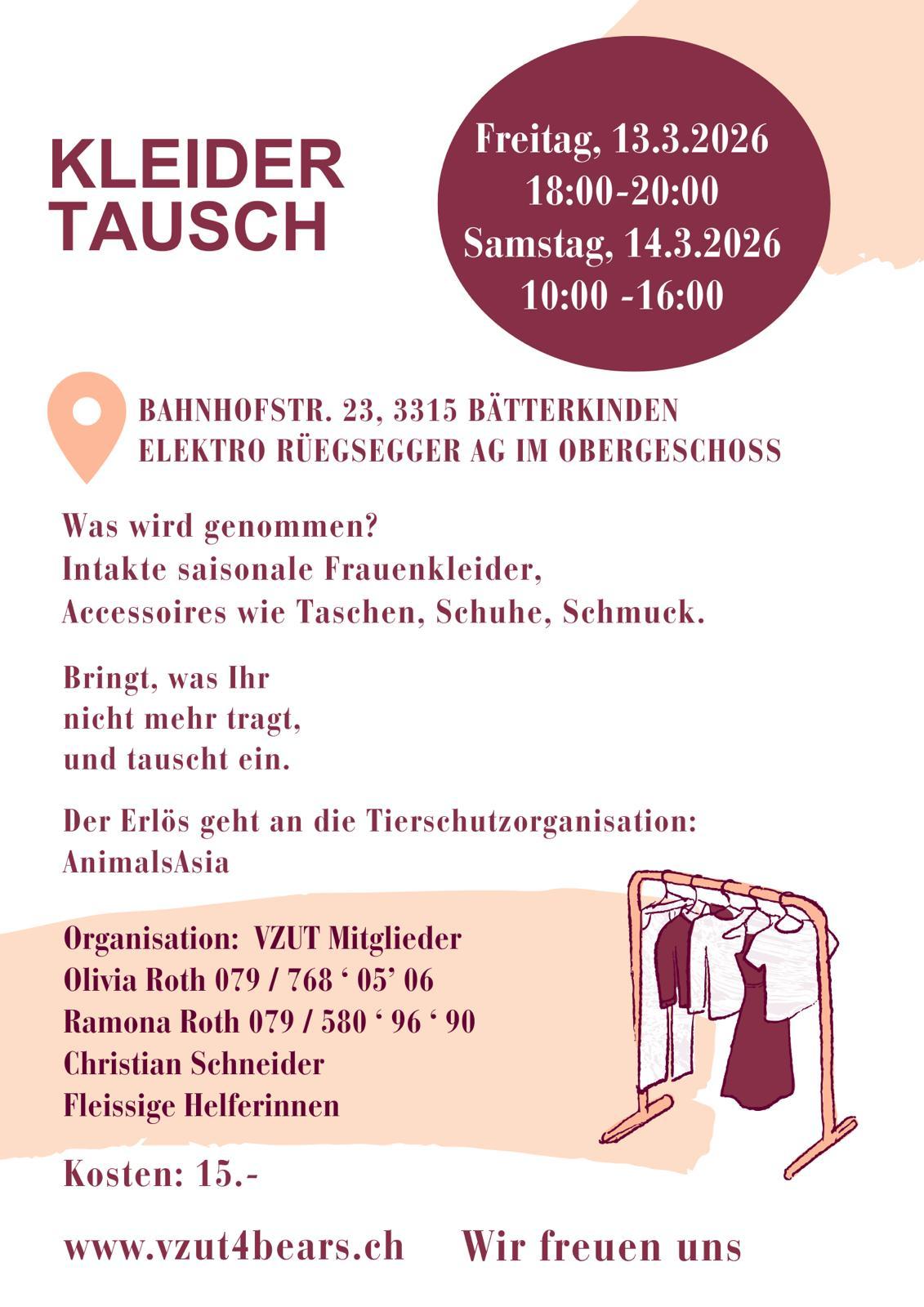 Kleider-Tausch-Plausch Tag vom 12. Juni 2021 - ein voller Erfolg! Wir spenden CHF 1'100.00 für die 4 geretteten Zirkusbären